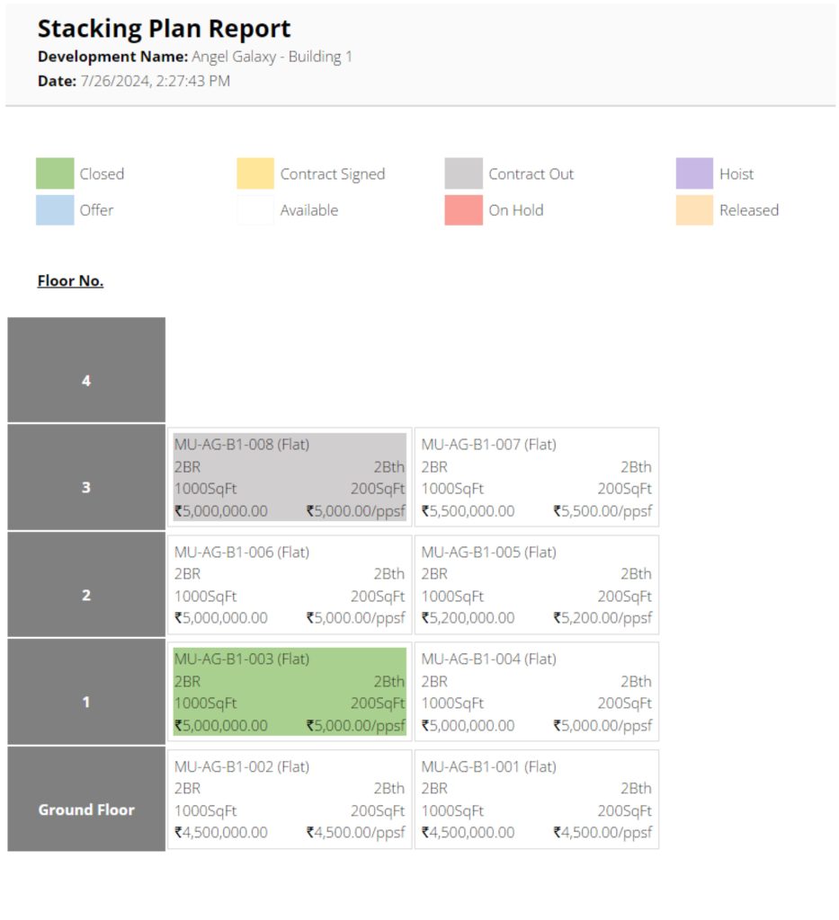 Within each project, buildings or towers should be clearly mapped. This segmentation enables floor-wise analysis and tower-wise sales performance comparisons.