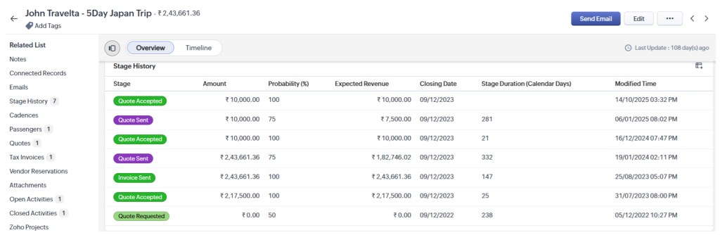 Travel bookings are rarely straightforward. A Europe tour may involve multiple cities, visa documentation, hotel upgrades, sightseeing arrangements, and special preferences. Managing this through email threads quickly becomes chaotic. A proper CRM for travel businesses must reflect this operational depth. Instead of storing only contact records, your CRM should allow trip-specific records under each client. This ensures that every journey is managed independently, with clarity and precision.