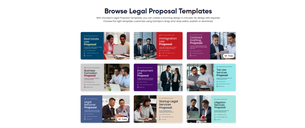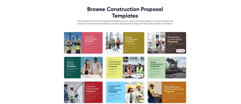 This creates a strong starting point from where users can focus on building the proposal rather than re-entering information. From here, teams can create proposals with DocHipo using pre-built proposal templates. They can structure content, refine details, and customize the branding before sharing the proposal with their prospects.