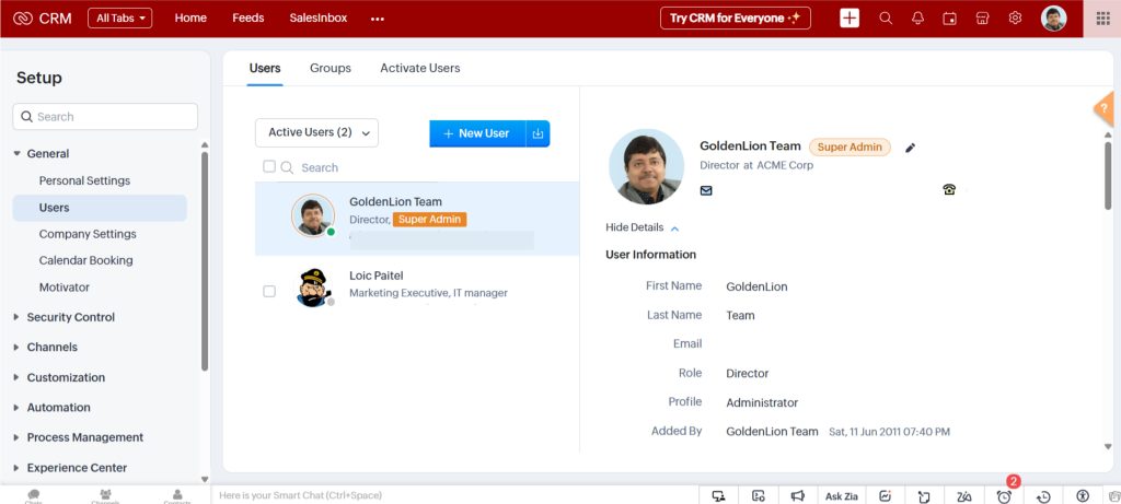 Follow these easy steps to add users to Zoho CRM: